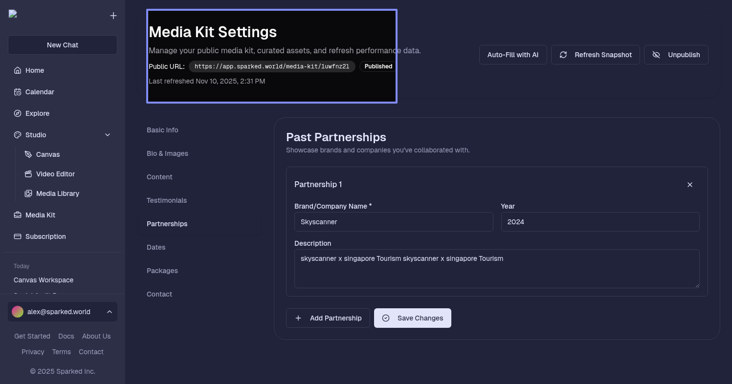 Potentially add a button that goes ‘share your media kit with brands, friends, managers’ etc